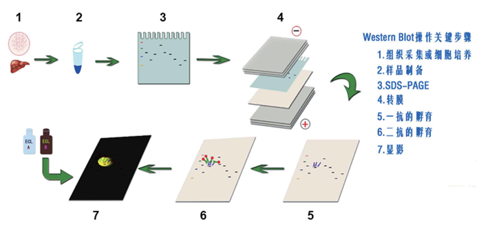 免疫印跡(Immunoblotting)又稱(chēng)蛋白質(zhì)印跡(Western Blot,WB),是一種綜合性的免疫學(xué)檢測(cè)技術(shù)。它利用SDS-PAGE技術(shù)將生物樣品中的蛋白質(zhì)分子按分子量的大小在凝膠上分離開(kāi),然后用電轉(zhuǎn)移的方法將蛋白轉(zhuǎn)移到固相膜上,以固相膜上的蛋白質(zhì)作為抗原,與對(duì)應(yīng)的抗體起免疫反應(yīng),再與酶標(biāo)記的第二抗體起反應(yīng),經(jīng)過(guò)底物顯色或熒光成像等方法以檢測(cè)電泳分離的特異性目的基因表達(dá)的蛋白質(zhì)。WB技術(shù)現(xiàn)已廣泛應(yīng)用于蛋白水平的表達(dá)研究、抗體活性檢測(cè)和疾病早期診斷等多個(gè)研究領(lǐng)域。